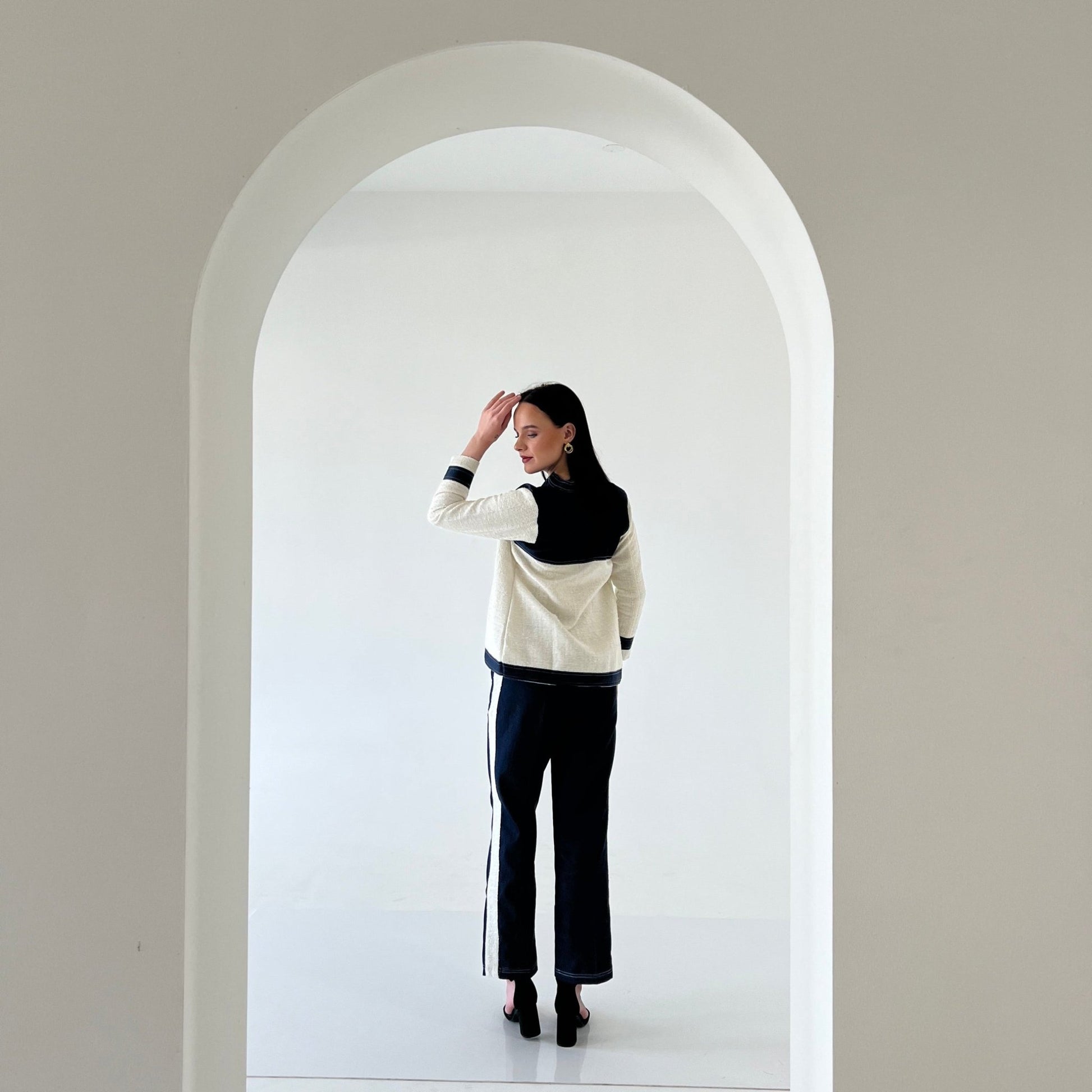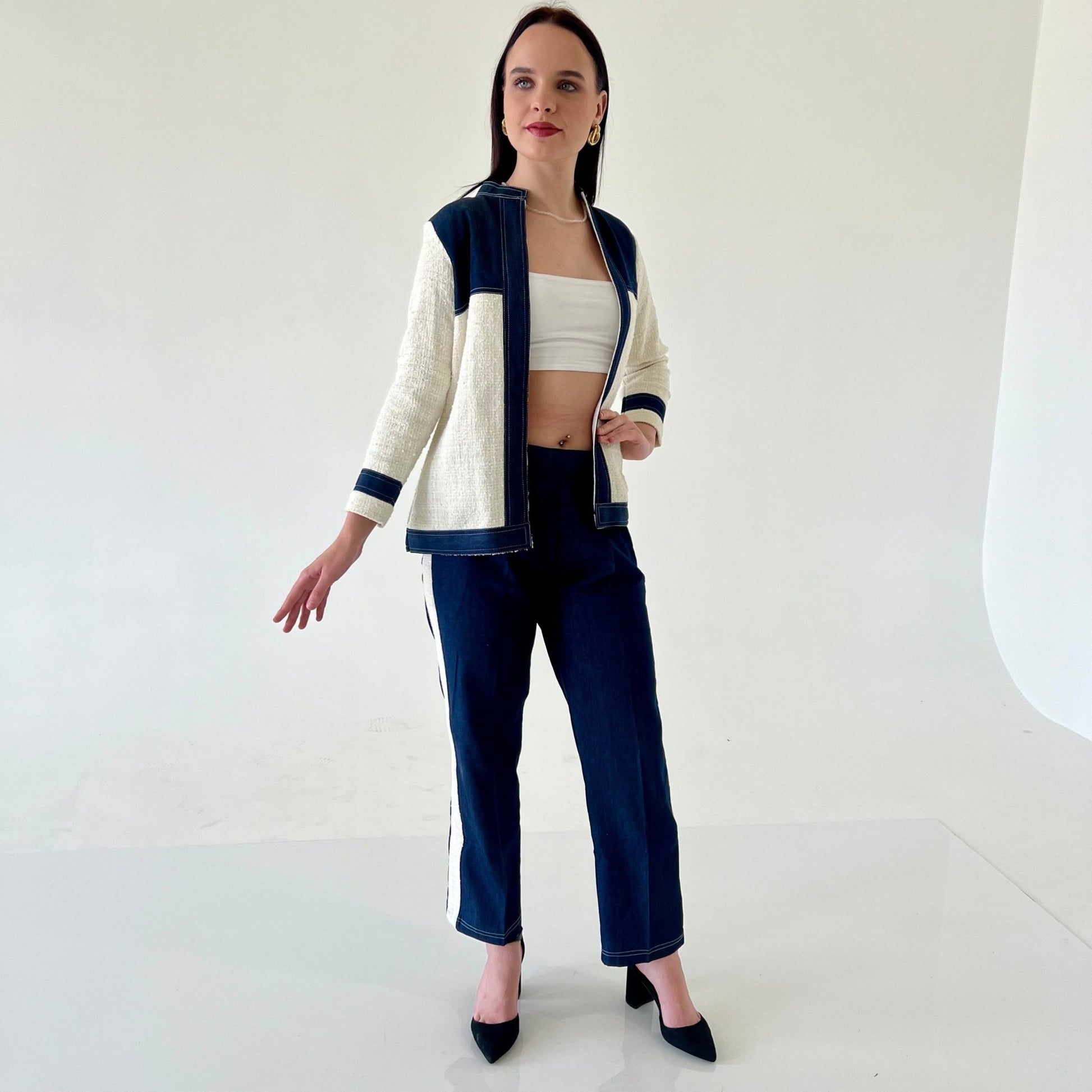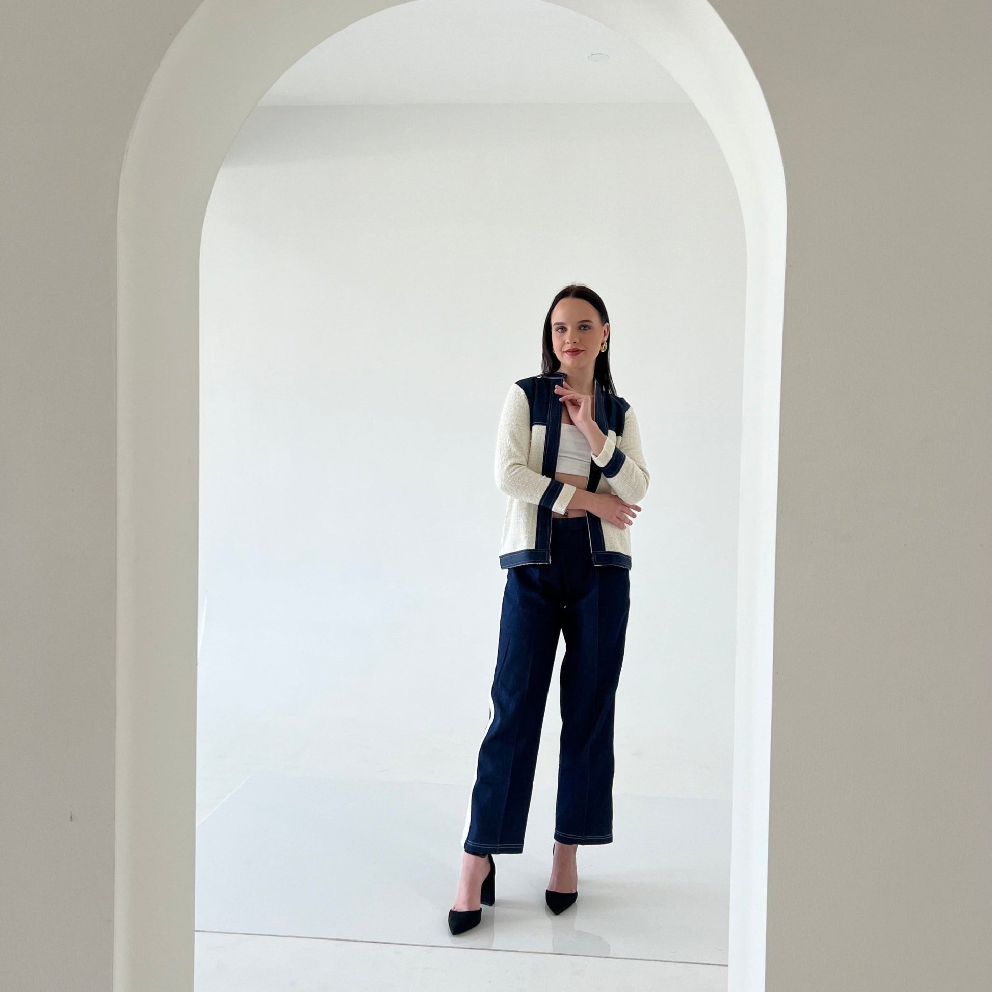 Shop our elegant denim and tweed co-ord set — a luxe fusion of structured tweed and deep denim. The tailored silhouette with contrast panels brings effortless sophistication and modern edge to your wardrobe